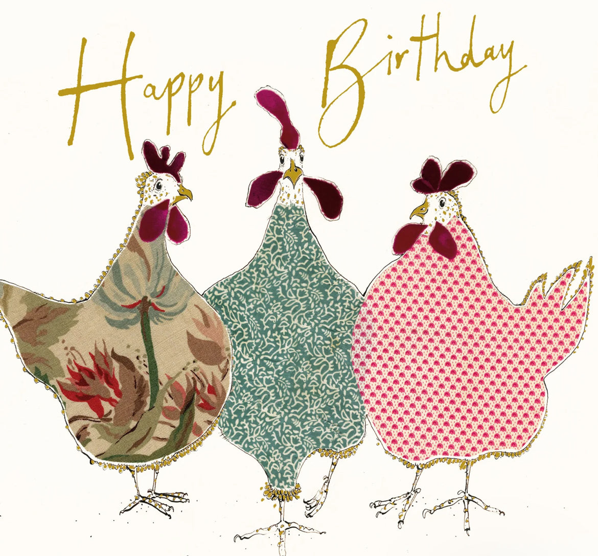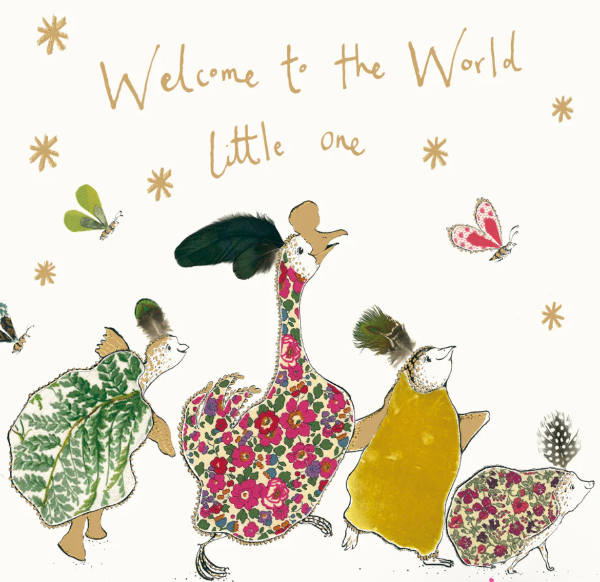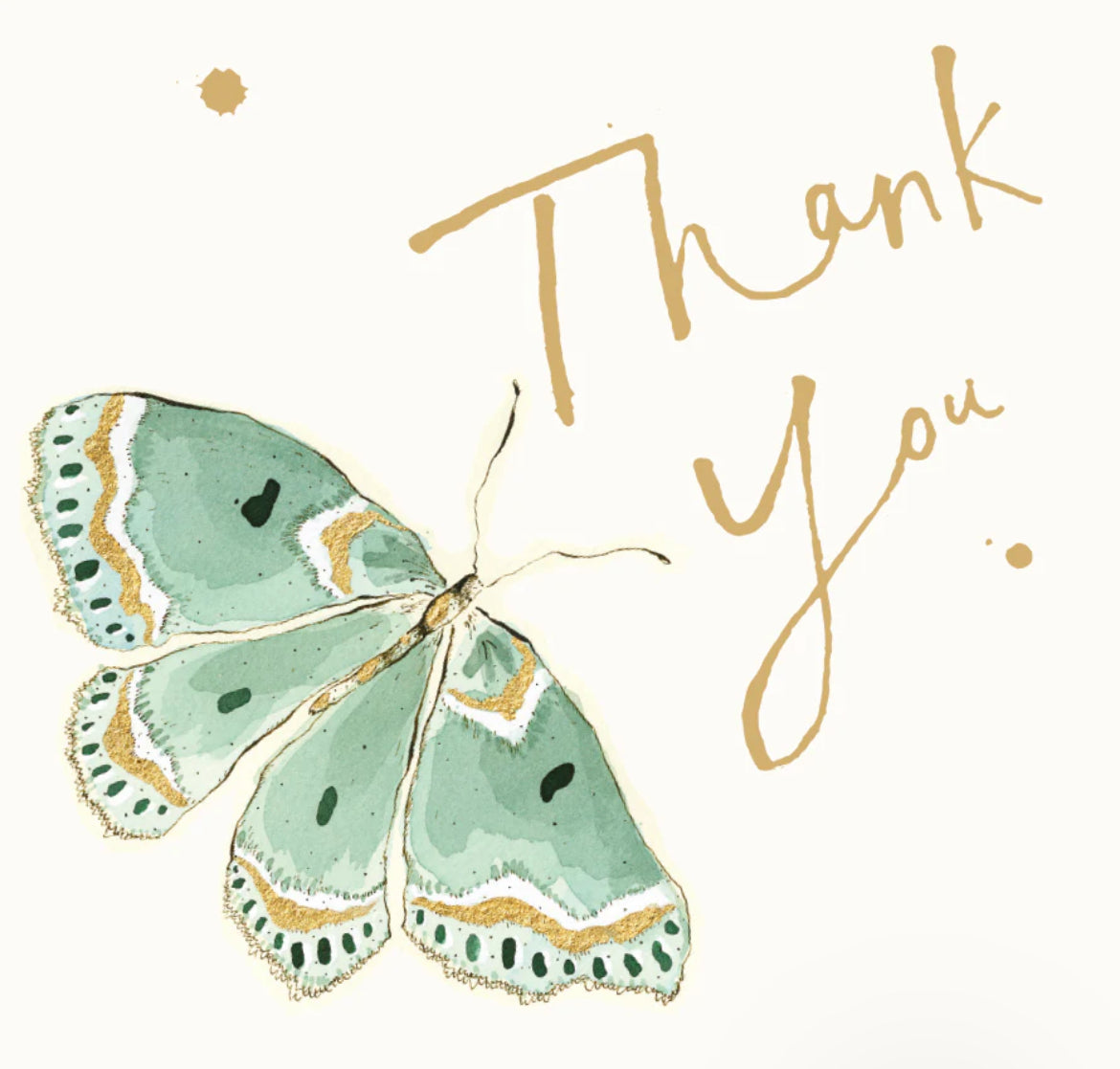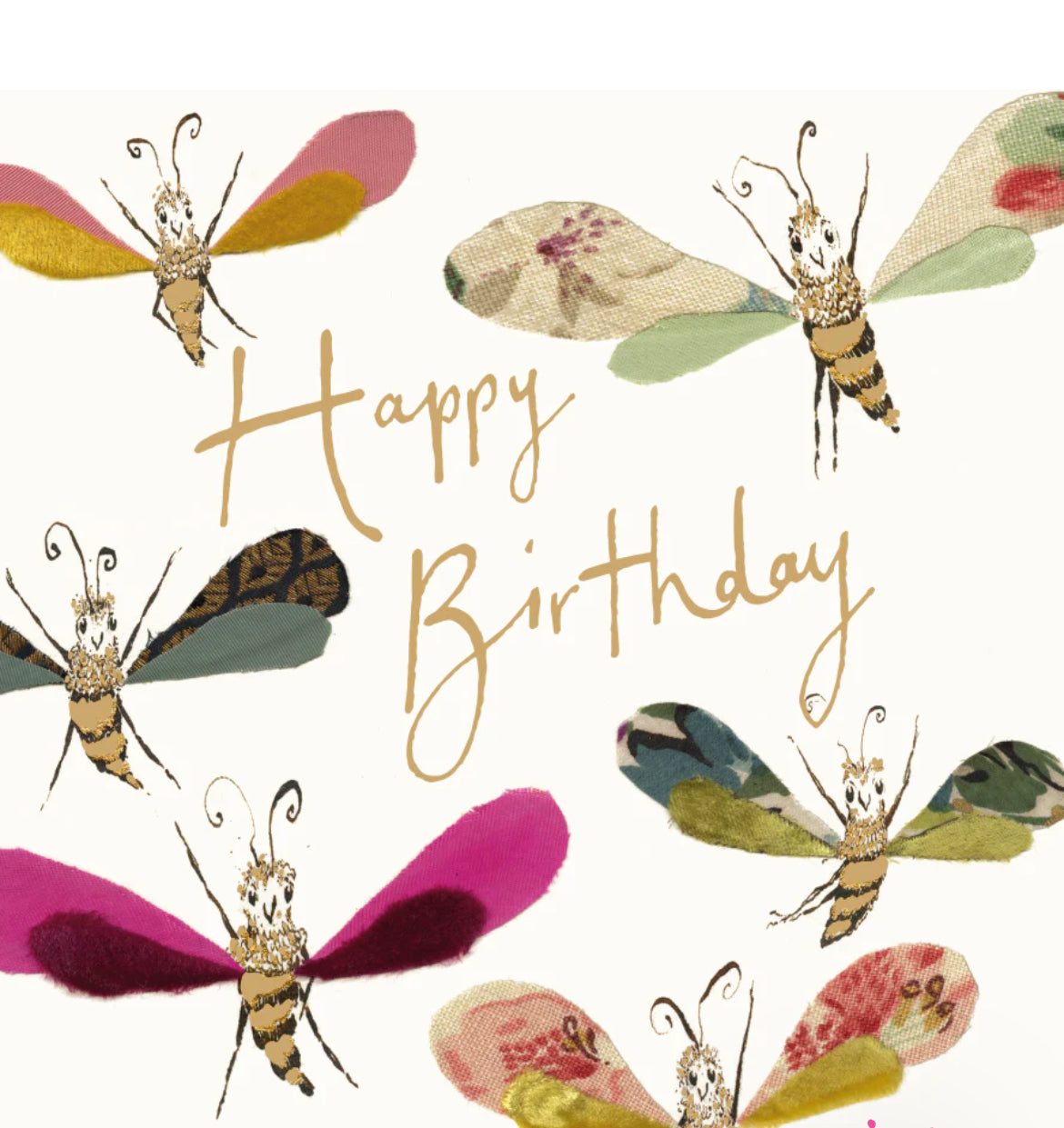 A gold foil embossed card illustrated with a happy signing Blackbird and the handwritten text...