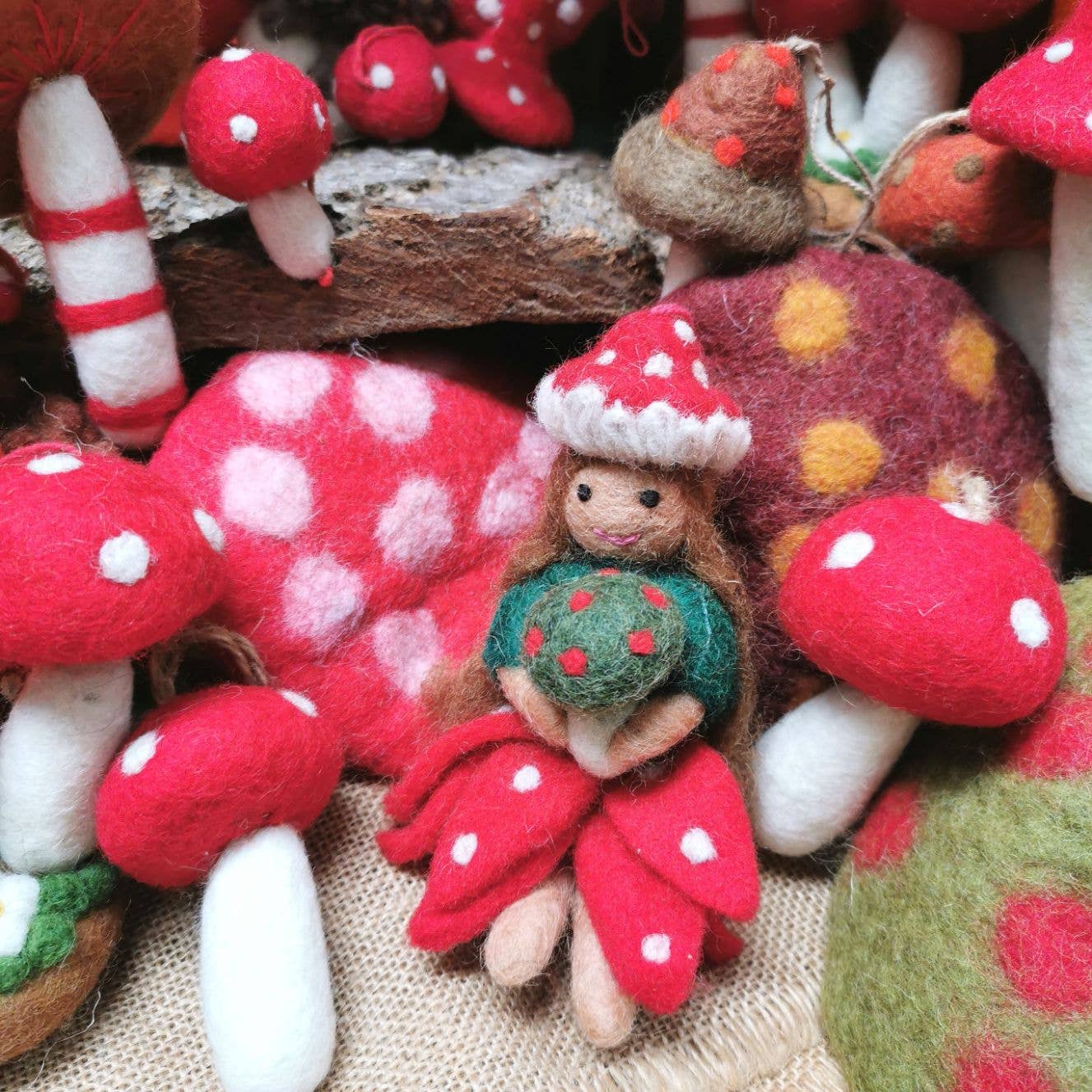 As the summer draws to an end, this autumnal Toadstool fairy begins to make her appearance! With her red wet felted toadstool skirt and matching hat upon her brown, wool hair, we're sure you won't miss the summer sunshine too much with this gorgeous gal around.