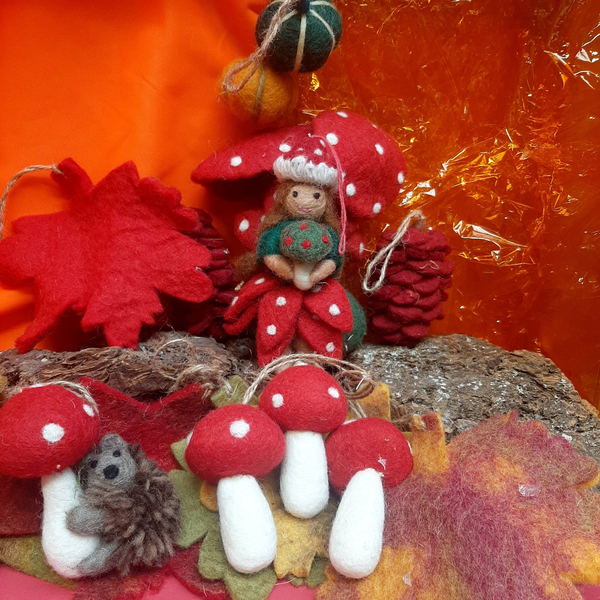 HANDMADE FELT TOADSTOOL FAIRY HANGING DECORATION