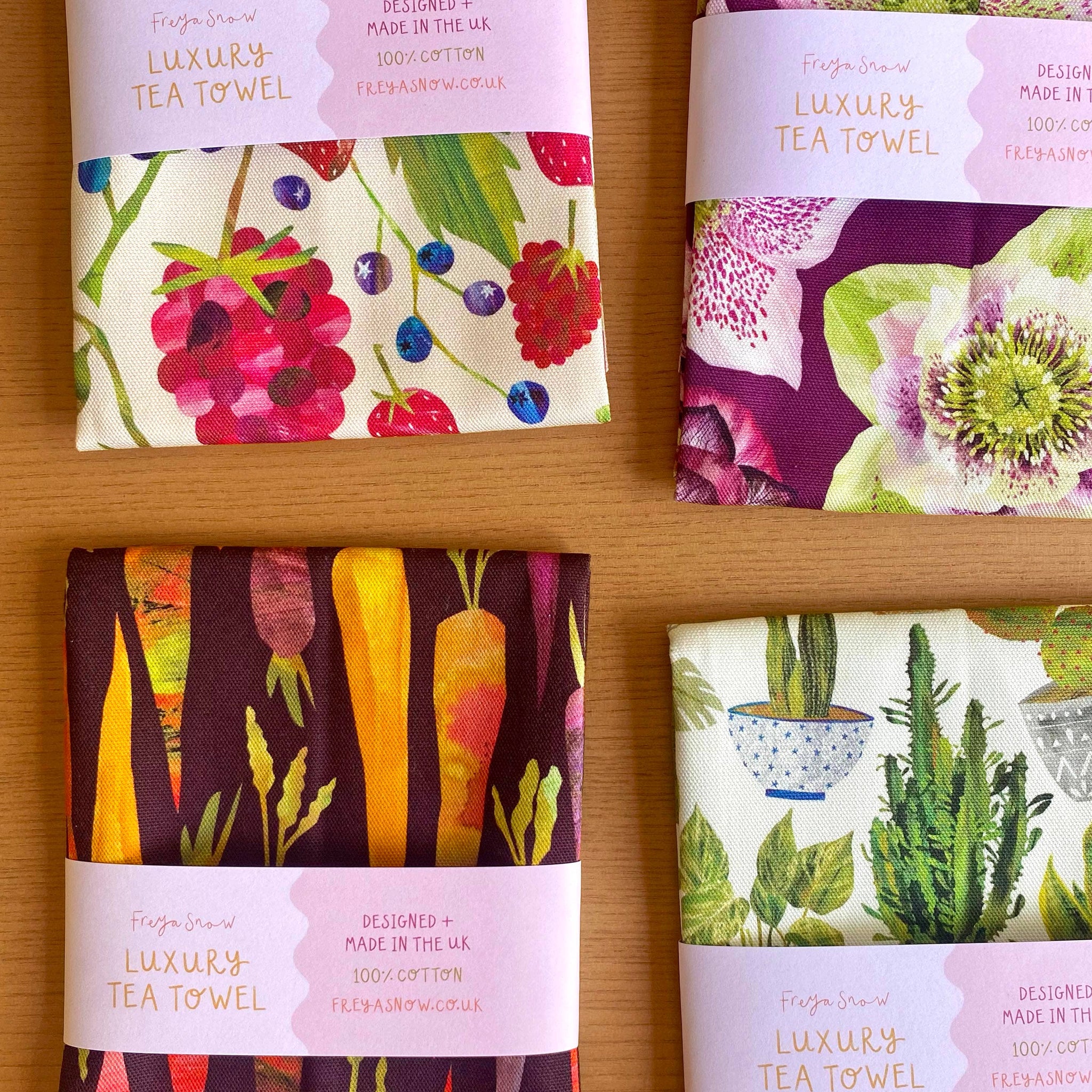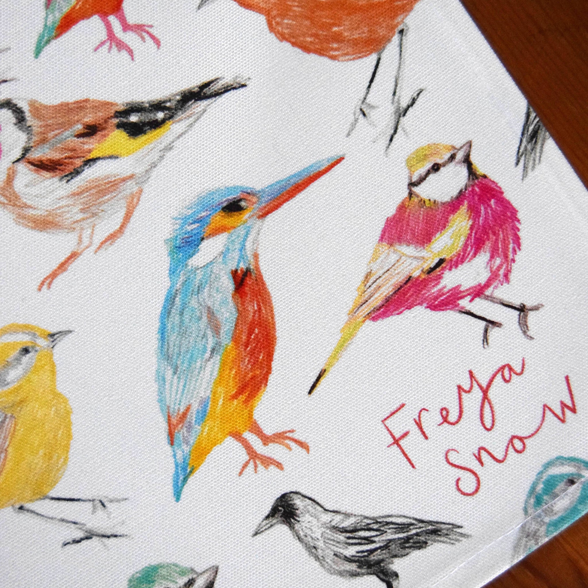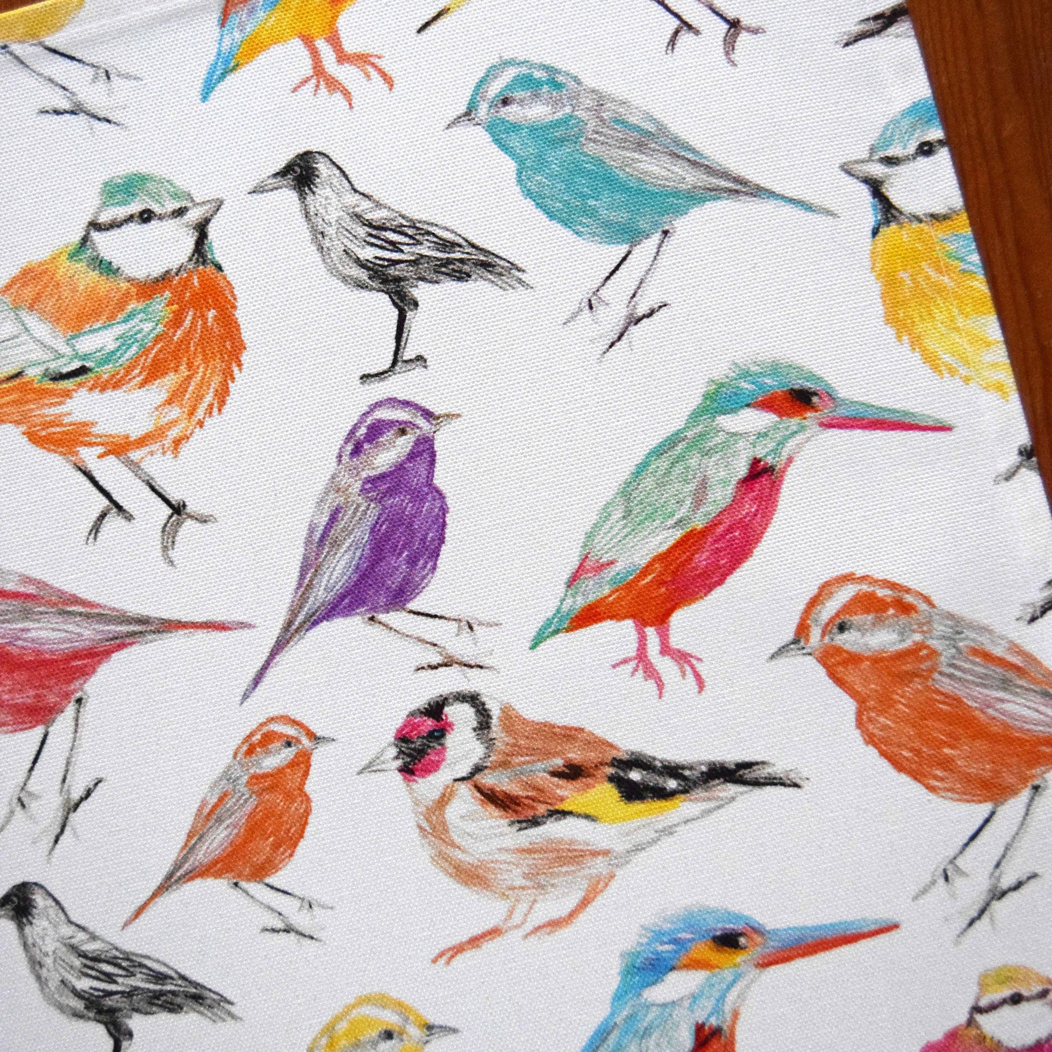 Cotton Tea Towel / Dish Towel / Kitchen Towel in Birds Print - Digitally printed onto 100% cotton 1/2 panama - 306gsm cotton - Vibrant colours which will stay bright after washing due to being printed with reactive inks - Packaged with a belly band (recycled paper, FSC certified) as shown in final image -
