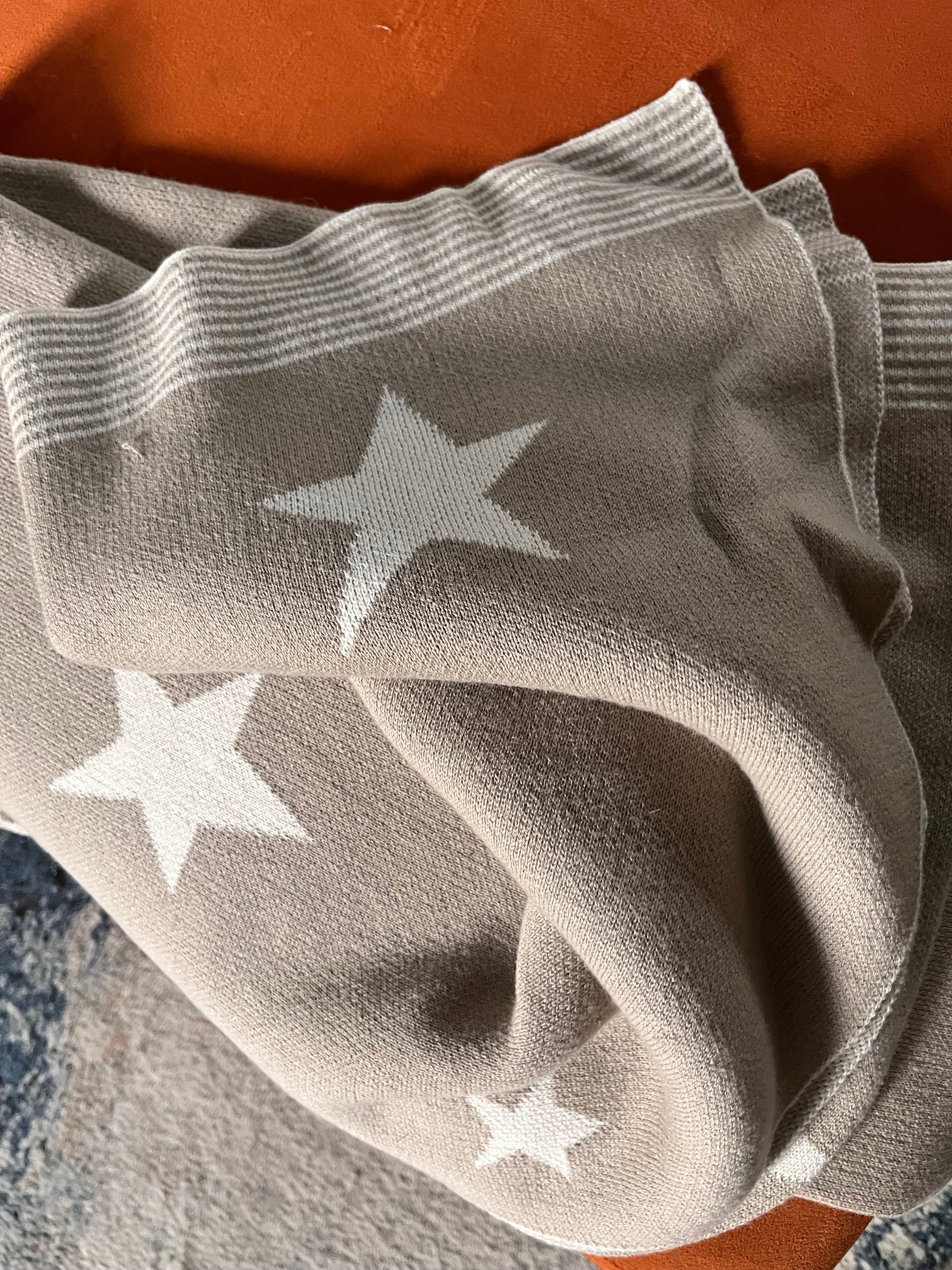 FINE KNITTED TAUPE AND CREAM STAR BLANKET