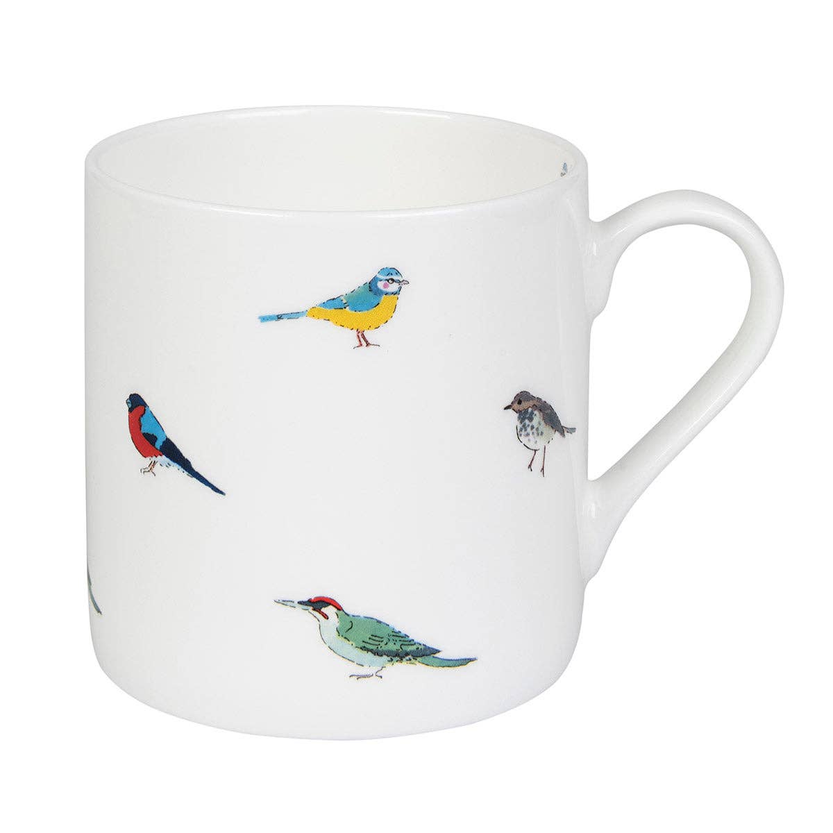 Description Sophie has captured the beauty of five British birds in her new Garden Birds collection featuring the Thrush, colourful Woodpecker, Blue Tit, Wren and Bull Finch on a white fine bone china mug.