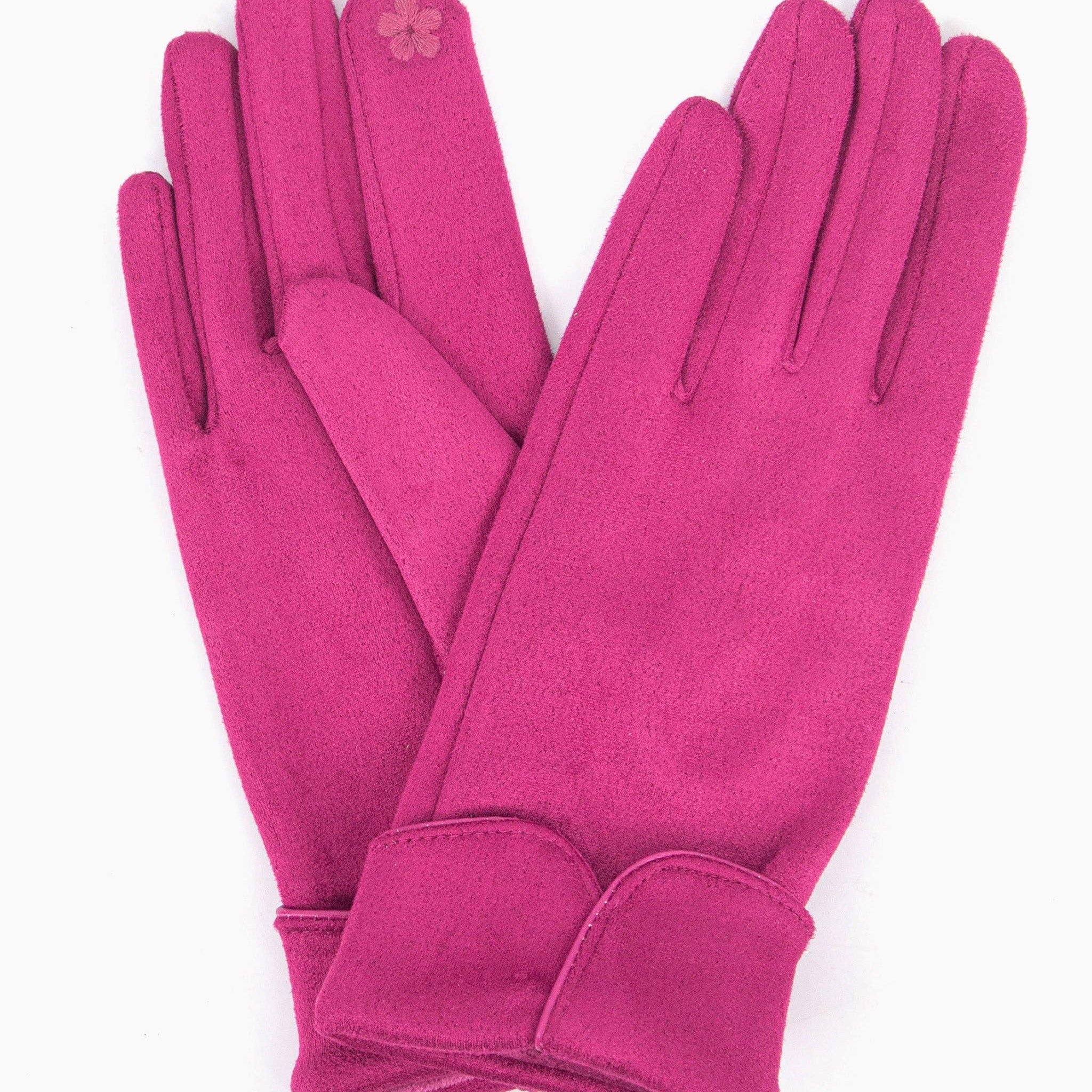 💝 PERFECT FOR Gift for her, everyday wear, Christmas 🧤 THIS PIECE Bold fuchsia pink winter gloves crafted from a soft velvet textured fabric. Touch screen compatible, these gloves can be worn while using any mobile device. Featuring a comfortably designed fold over scalloped cuff. FIT Scallop edge Touch screen compatible 🧵 FABRIC Made from a super soft velvet textured fabric. 100% Polyester Delicate machine wash Do not tumble dry
