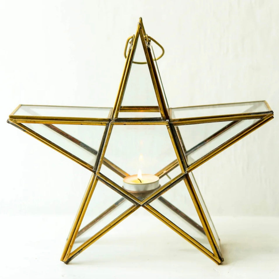This popular standing star lantern looks gorgeous alone or grouped together. They come in an antique brass finish, which makes them particularly festive for Christmas or weddings but also perfect for a mantlepiece, shelf or sideboard.