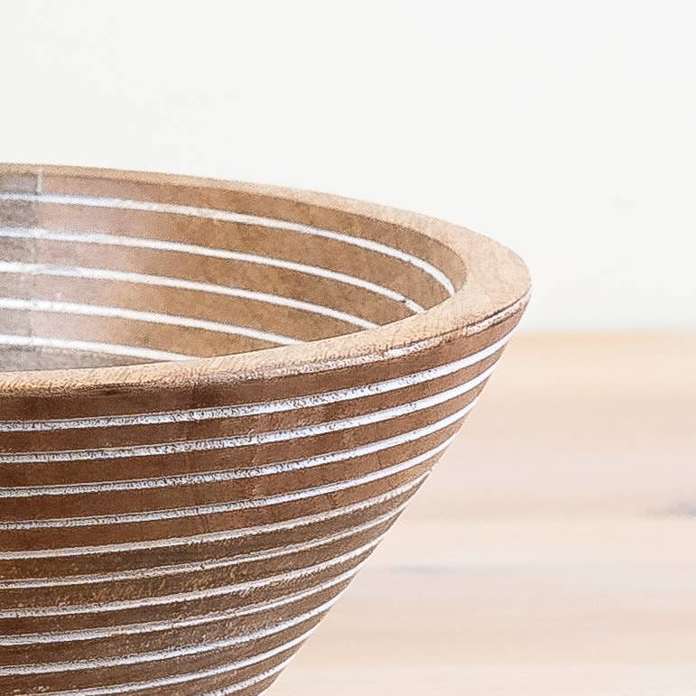 Introducing this beautiful wooden bowl, crafted from high-quality mango wood and finished with a stunning white wash lined design.