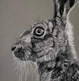 LIMITED EDITION FRAMED HARE PEN AND INK DRAWING BY CHRIS BIRKS
