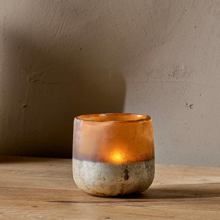 these stunning candle holders are made from recycled glass with ribbed detailing around the outside....