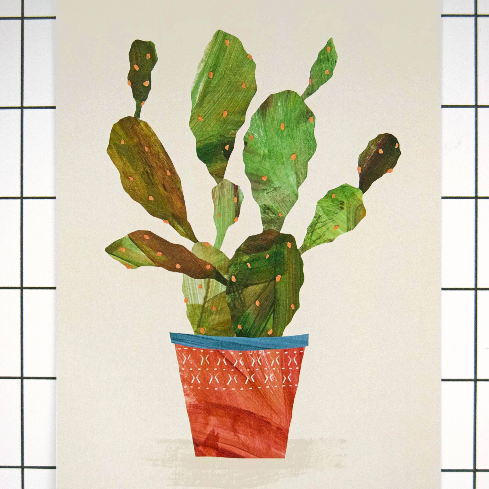 Prickly Pear Cactus Print / Houseplant Print / A4 + A3 size - Digitally printed onto 350gsm smooth matt card - Packaged inside a biodegradable cello* with recycled greyboard backing - A4 size 21cm x 29.7cm - A3 size 29.7cm x 42cm Printed in the UK Designed by Freya in her studio in Gloucestershire *The cellos are manufactured in the UK and are biodegradable, compostable and recyclable. Following info is from the manufacturers website: "The bags are made from NATIVIA® which is a new generation of bio-based biaxially oriented flexible packaging films made of PLA polylactic acid from NatureWorks. PLA delivers a lower carbon footprint and additional end of life options compared to most oil-based plastics. All NATIVIA® films have achieved the four-star OK Biobased certificate from Vinçotte and are approved for industrial composting according to EN 13432 standard by DIN CERTCO."