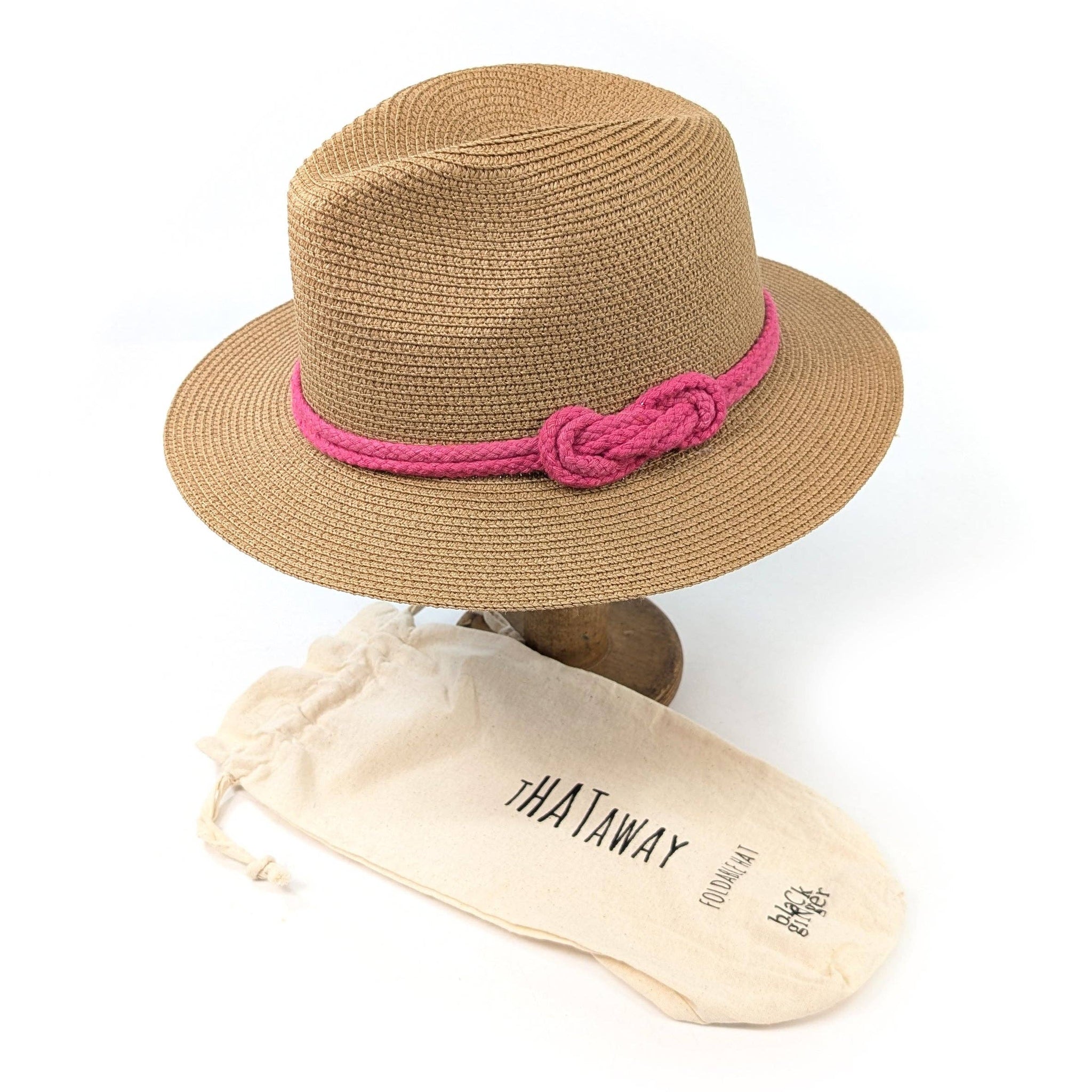 Reef Knot Panama Foldable Hat (57cm) – Pink Packable Summer Style with Vibrant Colour Rollable Panama sun hat designed for holidays, travel, and outdoor adventures. Features a striking rope reef knot band in vibrant pink, lightweight construction, and an adjustable internal drawstring for a custom fit. Comes with a complimentary fabric pouch for easy packing and storage. Perfect for beach days, sightseeing, and sunny getaways. Internal head size: 57cm.